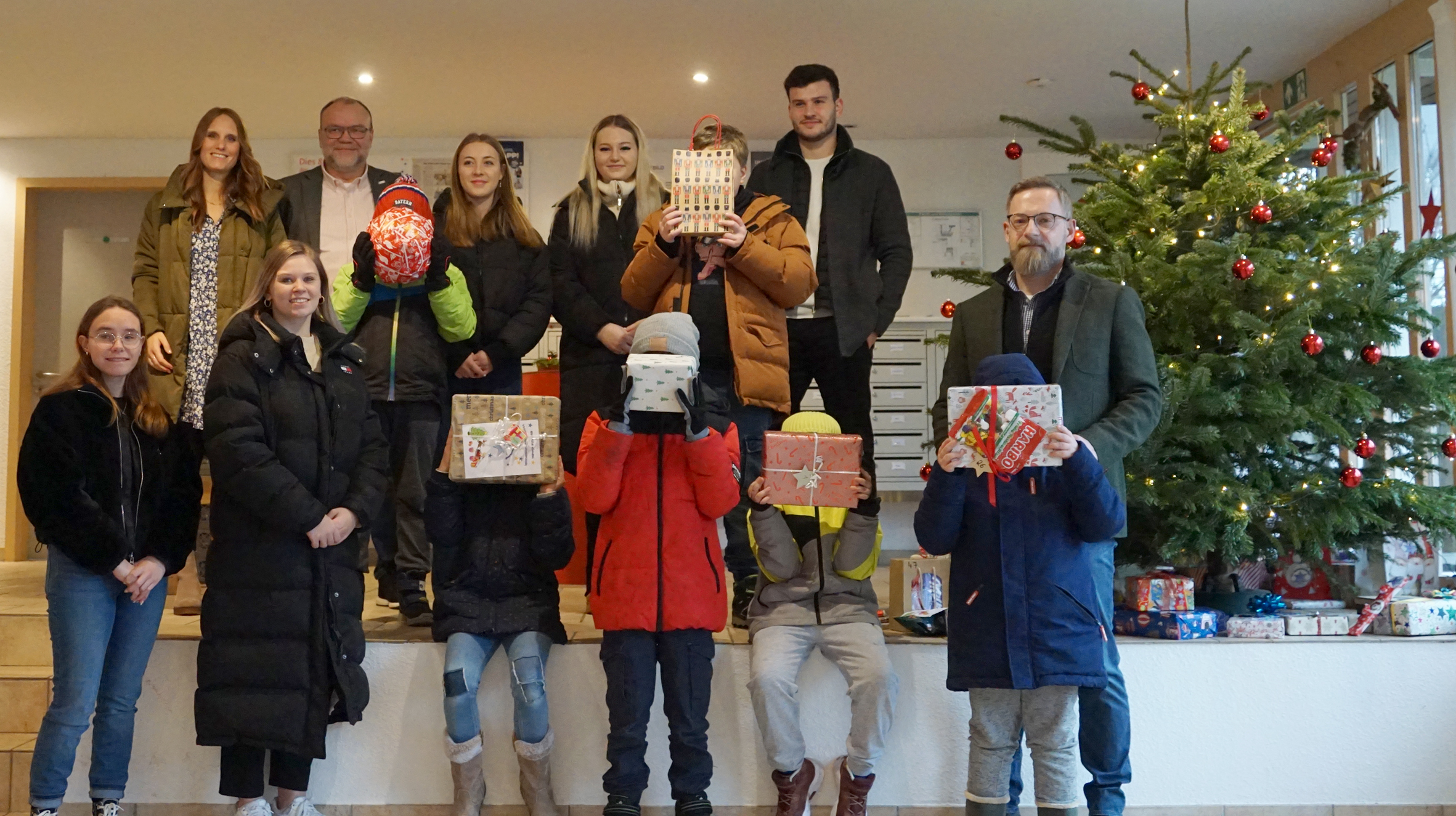 Schon in den Herbstferien hatten die Schülerinnen und Schüler, die in Mariahof wohnen, Wunschzettel für Weihnachten gemalt, geklebt und gebastelt. Vergangenen Montag brachten die Mitarbeitenden der Krankenkasse nun die 74 liebevoll verpackten Geschenke. Schon an der Tür wurden sie freudestrahlend von den Kindern und Jugendlichen empfangen. Von Lichterketten über Sammelkarten bis hin zu Hörspielen und Schokolade – die Weihnachtswünsche waren einfach.