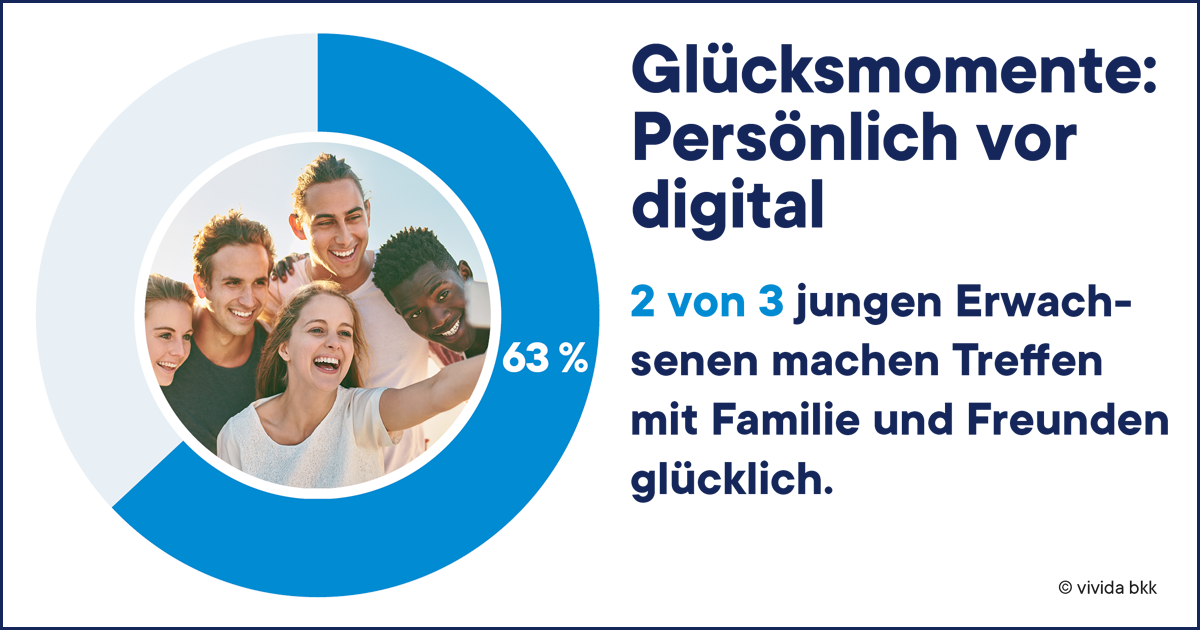 „Nicht das Handy macht glücklich, sondern echte Gespräche und gemeinsame Zeit mit anderen“, resümiert Sina Knöpfle, Gesundheitsexpertin bei der vivida bkk. „Trotz ständiger Erreichbarkeit sehnen sich junge Menschen nach menschlicher Nähe und persönlichem Austausch.“