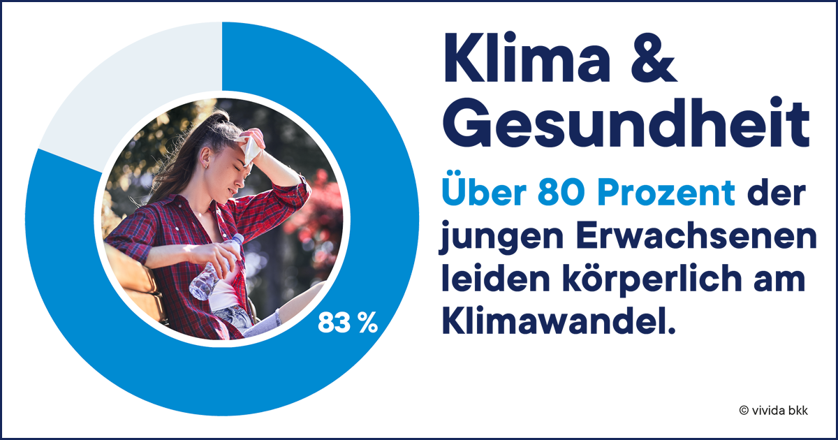 Die Klimakrise hinterlässt bei jungen Erwachsenen sowohl physische als auch psychische Spuren: 83 Prozent leiden körperlich unter den zunehmenden Extremwetterlagen. Für 79 Prozent wirkt sich die Sorge um die Zukunft auf ihre Seele aus. Klimabedingte Kreislaufprobleme und eine verstärkte Neigung zu Allergien spielen ebenfalls eine große Rolle. Dies sind Ergebnisse aus der Studie „Zukunft Gesundheit 2023“ der vivida bkk und der Stiftung „Die Gesundarbeiter“. Befragt wurden 1.071 Bundesbürger zwischen 14 und 34 Jahren.