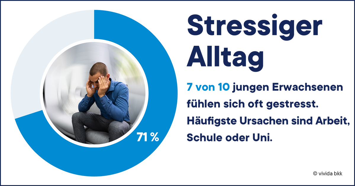 Die Gründe für den Stress fallen dabei unterschiedlich aus. So verursacht das Privatleben bei der Hälfte der Befragten Stress. Mehr als zwei Drittel gaben an, dass sie durch die Arbeit, Schule oder Universität gestresst sind.