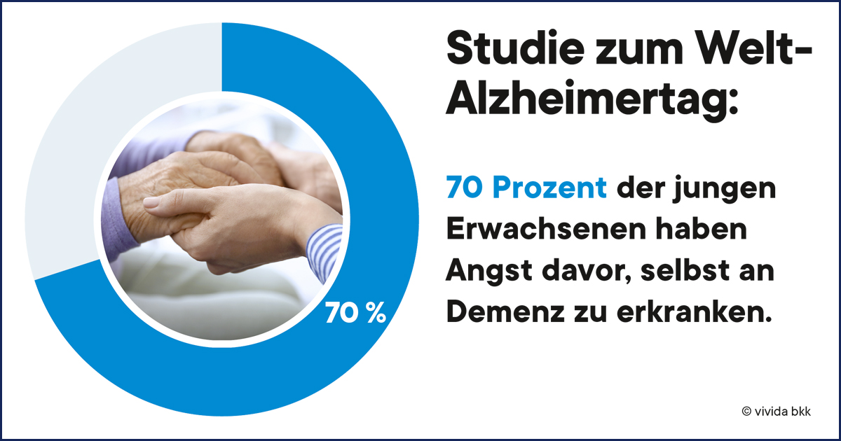 Villingen-Schwenningen – Rund 1,6 Millionen Demenzerkrankte leben derzeit in Deutschland. Jedes Jahr wird am Welt-Alzheimertag (21. September) auf ihre Situation und die ihrer Familien hingewiesen. „Wenn enge Angehörige an Demenz erkranken, ist das eine Herausforderung für die ganze Familie“, sagt Andrea Bahnsen, Gesundheitsexpertin der vivida bkk. Knapp drei Viertel der jungen Erwachsenen sind überzeugt, dass die Erkrankung zu großen Belastungen führt, zeigt die Studie.
