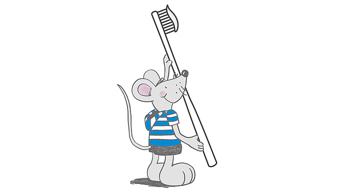 Der Zahnarzt kann die Löcher reparieren, aber so richtig wie neu sind die Zähne dann nicht mehr. Ich möchte, dass meine Zähne immer wie neu bleiben. Deshalb pflege ich sie mit meiner blauen Zahnbürste. Ich bin bestimmt die einzige Maus auf der Welt, die eine eigene Zahnbürste hat. Ich bin eben eine besondere Maus!
